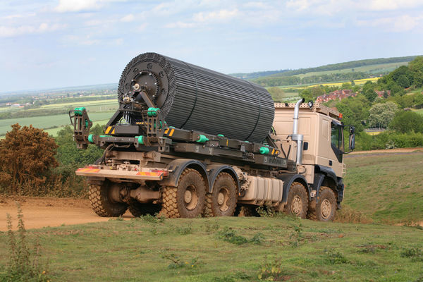 FAUN Trackway®’s Heavy Ground Mobility System (HGMS) is a temporary modular roadway which deploys, recovers, transports and stores up to 100m of MLC 70 (Military Load Classification) Trackway® improving mobility for heavy and wheeled vehicles in all types of operations. 50 metres of Trackway® is laid by two men in less than six minutes on the toughest terrain. The aluminium Trackway® will withstand repeated loads of up to 150 tonnes dependent on the ground conditions. The original requirement in 2008 was a portable roadway system which deploys up to 100m of MLC 70 roadway. FAUN Trackway® delivered units which consisted of; 100 metres of Trackway®, the aluminium panels that make the roadway, a Trackrack® system for the launch and recovery of the roadway and a spoolrack to carry additional road lengths to replenish the launch system.