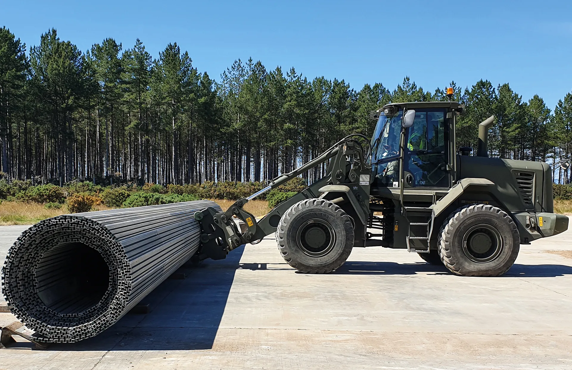 Manufactured from steel and painted as standard, the Pushframe is designed to roll out and recover up to 164 feet of C40 Trackway® or C90 Trackway® by use of a compatible host machine with a quick hitch, or a suitable hitch.