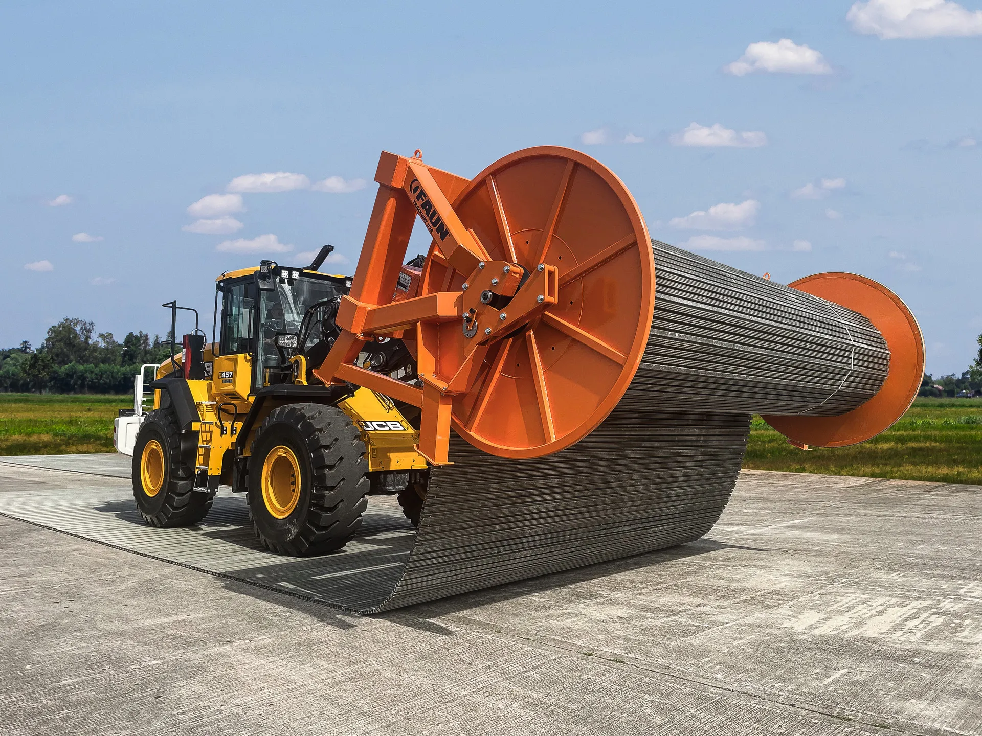 Manufactured from steel and painted as standard, the Pushframe is designed to roll out and recover up to 164 feet of C40 Trackway® or C90 Trackway® by use of a compatible host machine with a quick hitch, or suitable hitch.