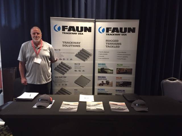 Every year we team up with DPM (Defence Products Marketing) to attend a number of exhibitions across the US, and the team has just returned from a successful trip to AEA in Fort Leonard Wood. The FAUN Trackway® USA, Inc. team is currently exhibiting at AUVSI in Dallas, stand 4101, from 8th to 11th May, and will be moving on to SOFIC in Florida the following week.