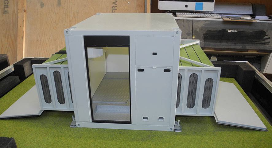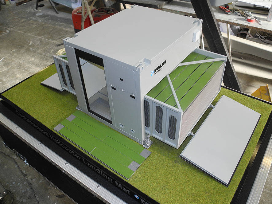Transported by helicopter, the MRP enables expeditionary, humanitarian and relief personnel to access all the equipment and tools necessary to build a helipad, before transforming into a Forward Operating Station. Fitted with power, air conditioning, and ample storage space, the container can be configured to include two sleeping spaces and can be used off shore.