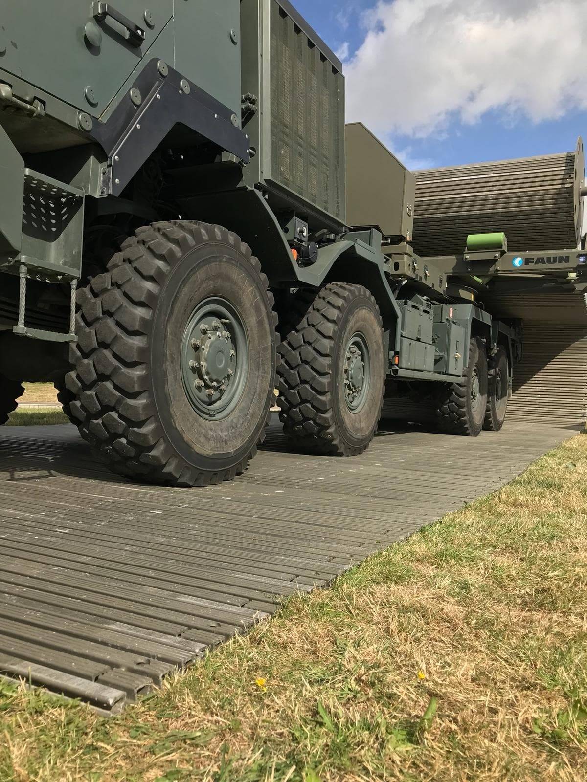 Completing the month, last week our CEO joined Neil Wigley our Product Support Engineer, Michael Jordan our Business Development Manager EMEA and Head of Marketing, Rachel Roberts at DVD, located at Millbrook Proving Ground. Despite the windy weather it proved to be a productive and busy show. With our Heavy Ground Mobility System and M150 Trackway® on static display, interest was at an all-time high at our stand. Suitable for heavy traffic including tanks, transporters and bridging support our M150 Trackway® roadway withstands vehicles up to an MLC (Military Load Classification) of 150 tonne.